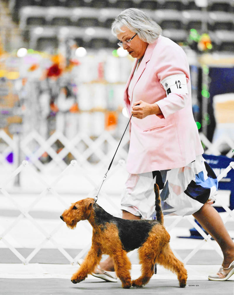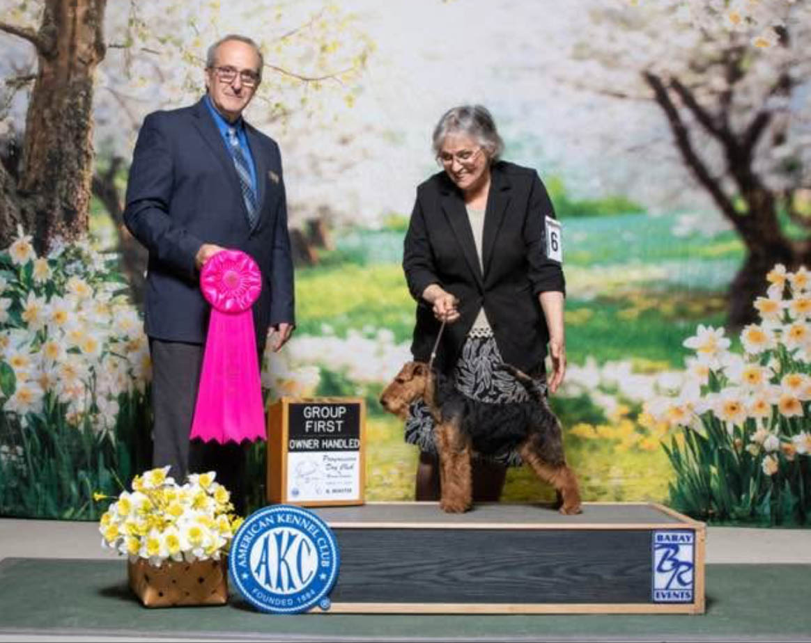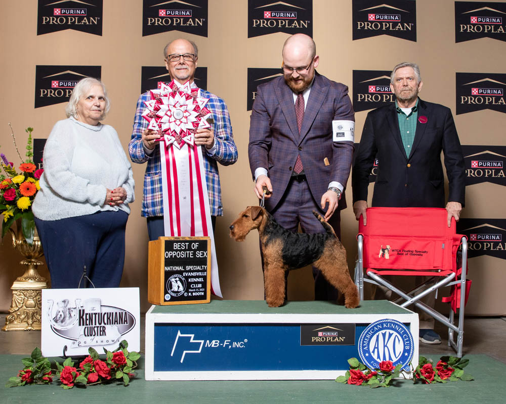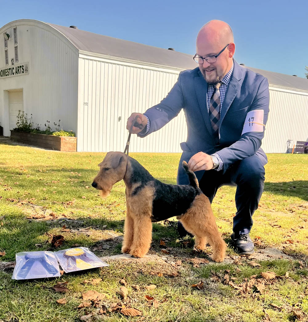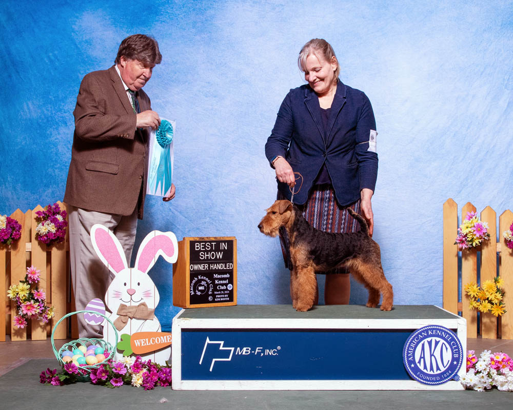 Happy to report that our new young boy Brynmawr Yo Ho Ho (Rum) was awarded a five point major at the WTCA Floating Specialty Weekend at Louisville. He was also awarded Best of Winners and Best Bred By Exhibition Welsh Terrier. He went on to win the Best Bred By Exhibitor Terrier Group. Beginning his career, this was only the second weekend for this young boy.