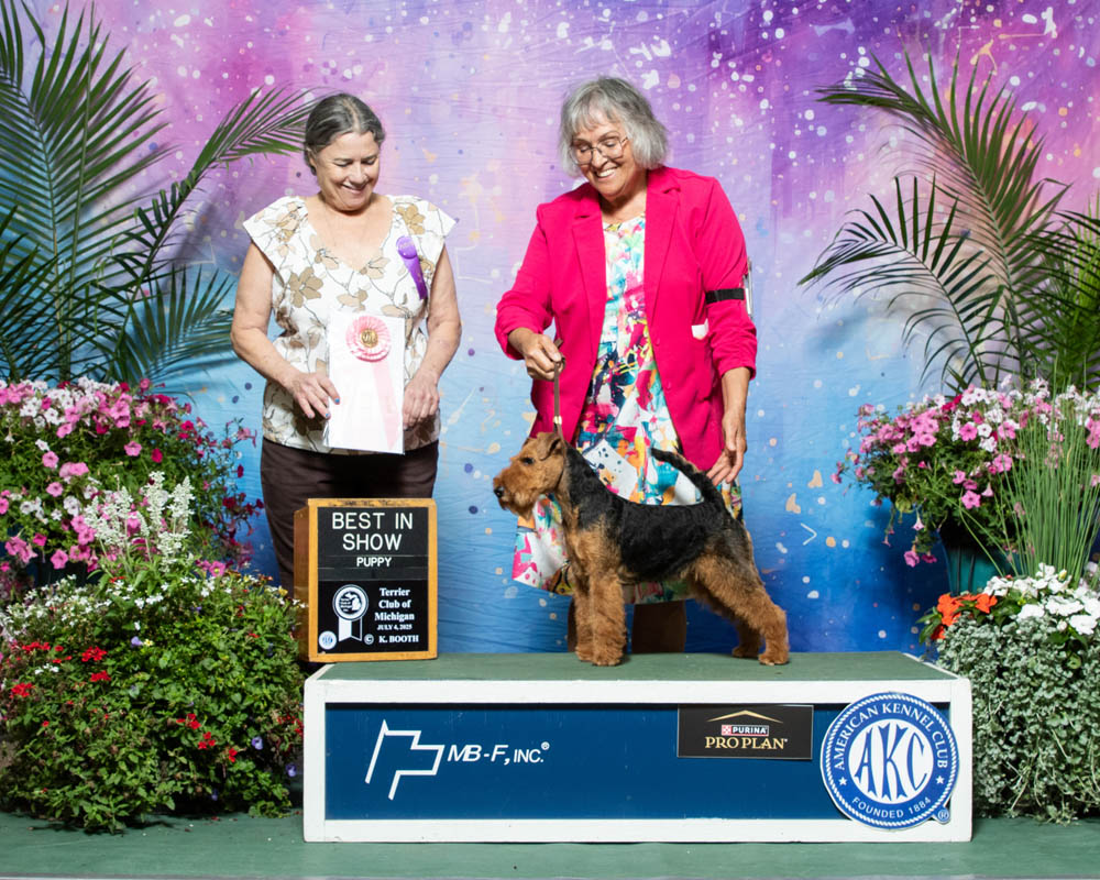 The puppies made their debut in Louisville, KY, at just 6 months old. Two large specialties - Welsh Terrier Club of Northern Illinois and the Welsh Terrier Club of America Floating Specialty.