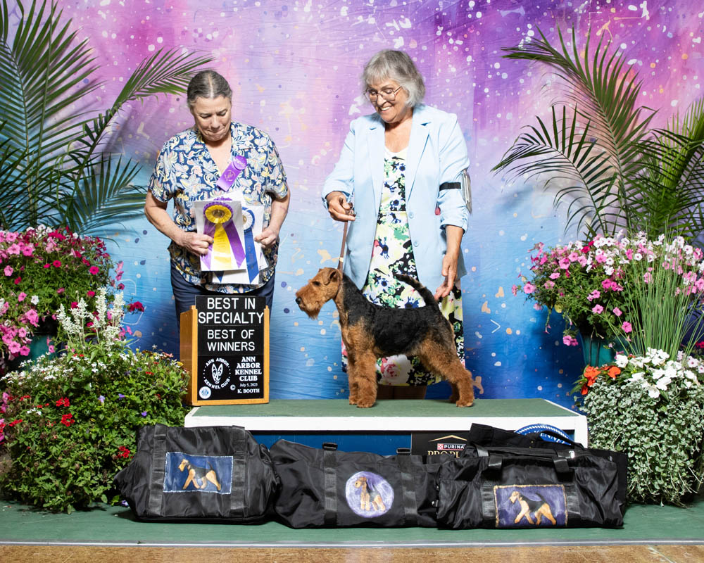 Brynmawr Wizard's Dream (Reggie) has hit the show trail with a bang. He started his first weekend being awarded Winners Dog at the Welsh Terrier Club of Northern Illinois. He then visited the state of Wisconsin and was awarded a Terrier Group 1 from the classes. On to Indiana the following week he swept the weekend going Best of Breed all three days. Reggie then visited Ohio at the prestigious Canfield weekend. He was awarded Best of Winners all 4 days and was awarded Best of Breed again over champions 3 of the 4 days. Thank you to Jordan Waters for piloting this young boy to such a great start. And huge thank you to Diane Borneman and Bryan Safranski for raising and loving this special young boy. We are so excited about this little guy.