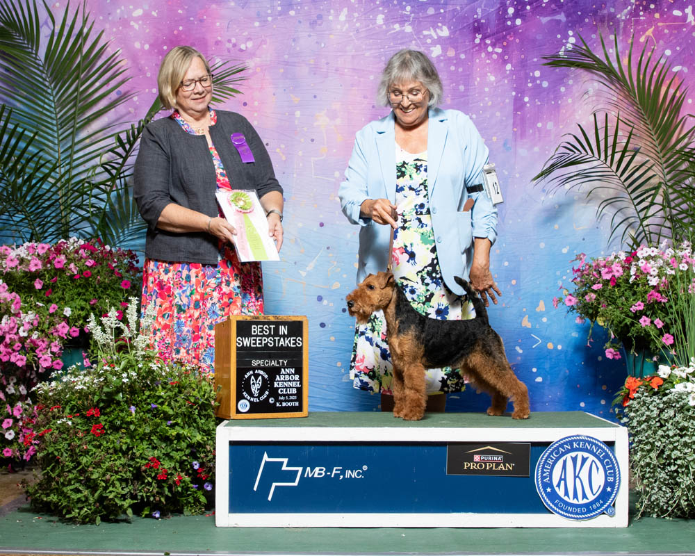 The next day at the Welsh Terrier Club of Northern Illinois Specialty, Cupcake won Best in Sweepstakes. She went on to win Winners bitch for a major. She topped the day by being awarded Best of Breed again from the puppy class.
